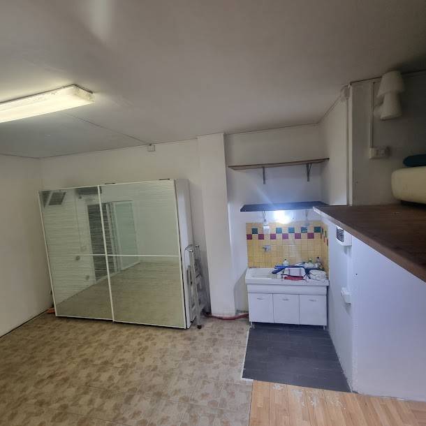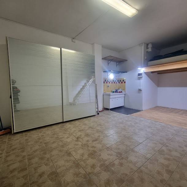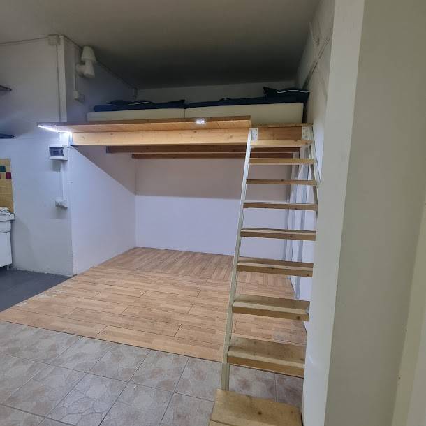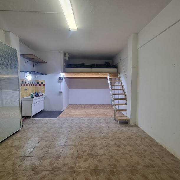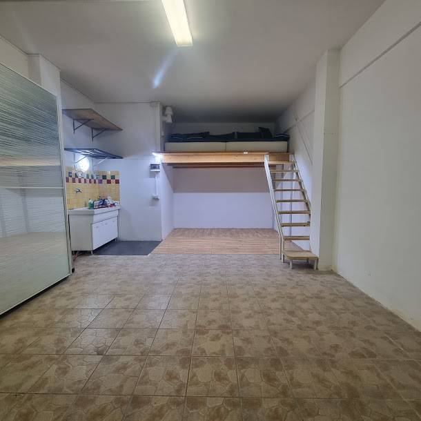 SAVONA. QUARTIERE VALLORIA. Via Genova. Proponiamo in vendita ampio Box di 30 mq Piastrellato, con lavandino e acqua fredda e soppalco collegato da una comoda scala. Arredato come in foto. La richiesta euro 39.000.