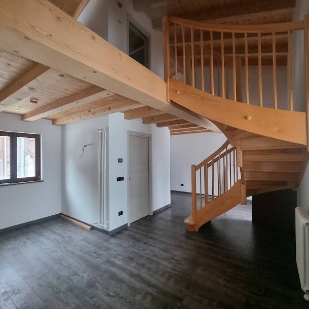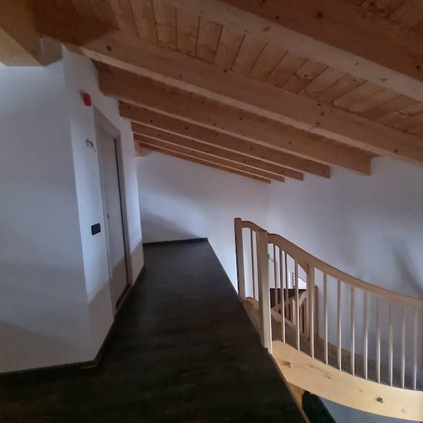 L' ingresso si apre sulla zona giorno con cucina a vista e un bagno. Una comoda e ampia scala in legno conduce al secondo livello, dove è possibile creare una camera matrimoniale, oltre una camera singola/studio, e secondo bagno . Un'ampio terrazzo panoramico al piano di ingresso completa la proposta.